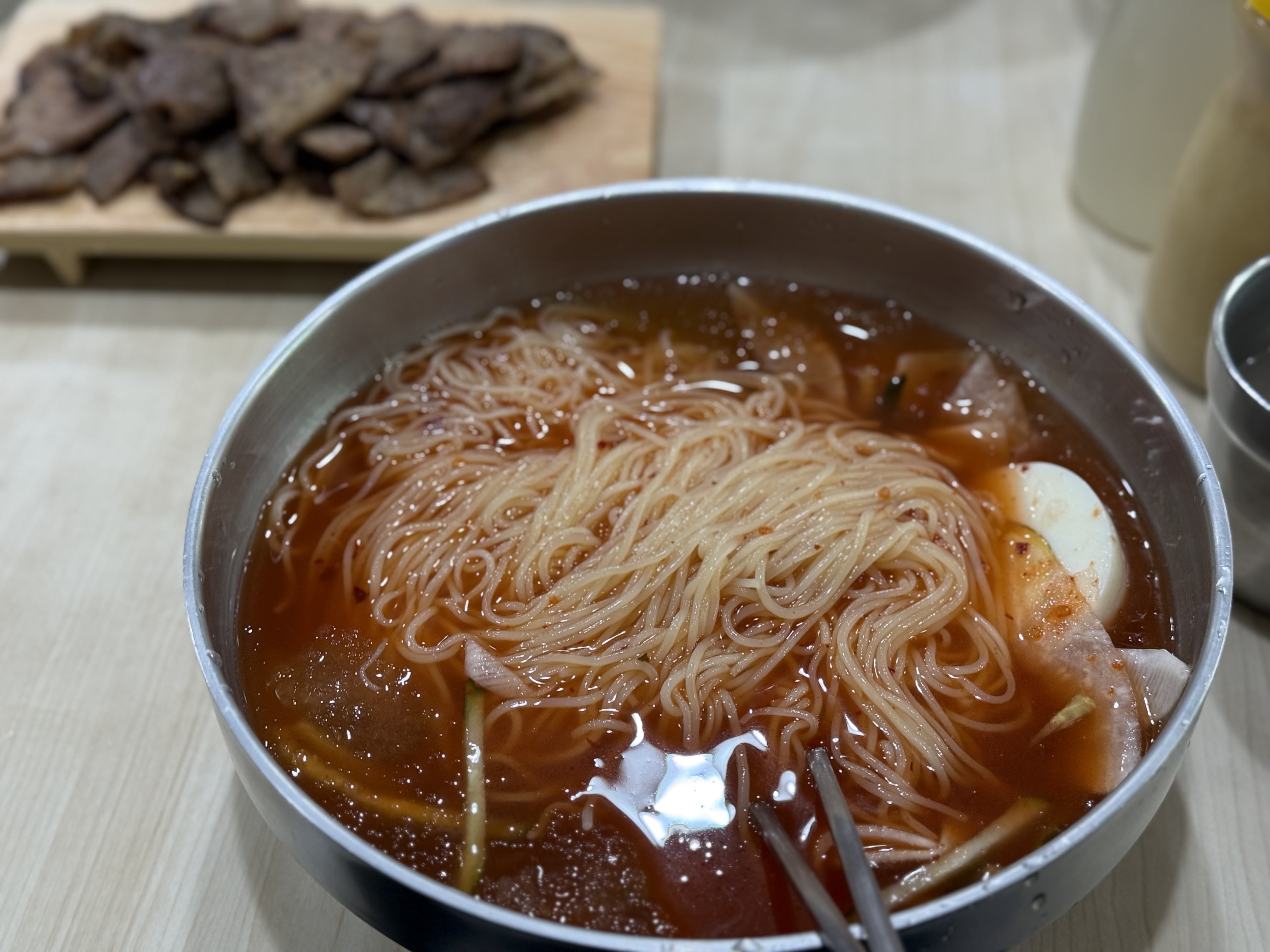 국물 생각보다 깔끔하고 시원함. 냉면 육수와는 또 다른 느낌인데 깊은 맛이 있으면서도 무겁지 않아서 한그릇 다 비우는데 부담 없었음.