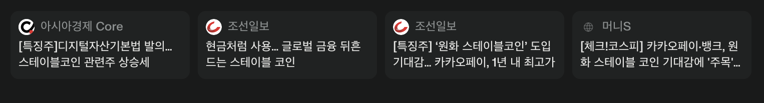 - 수혜 요인: 기존 사용자 기반을 활용한 스테이블코인 결제·송금·투자 서비스 확장 기대