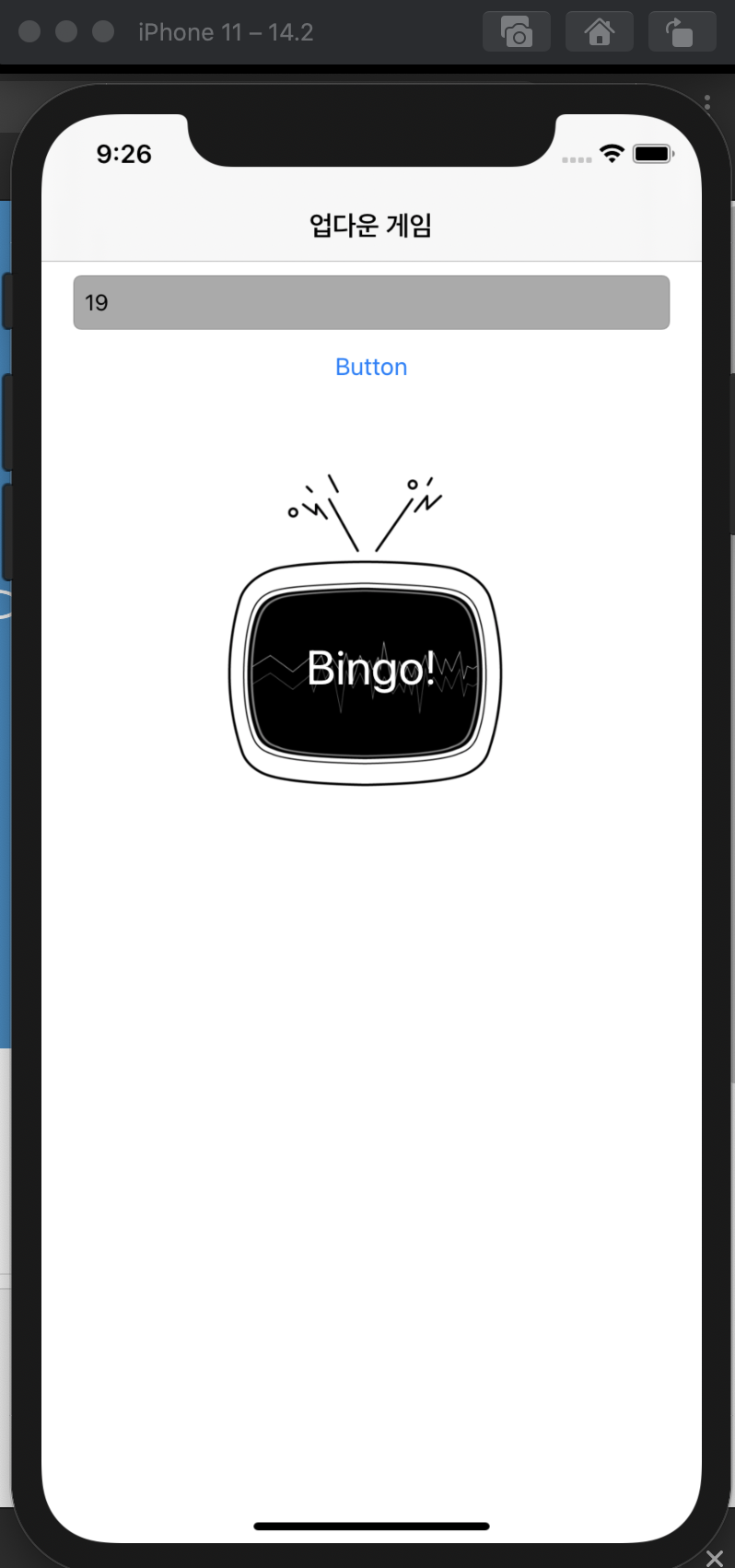 UITextFieldDelegate 예제를 사용해서 사용자가 리턴(엔터)를 눌렀을 때 랜덤 값(게임의 결과)와 사용자가 입력 값이 같은지 확인하는 게임을 만들었다.