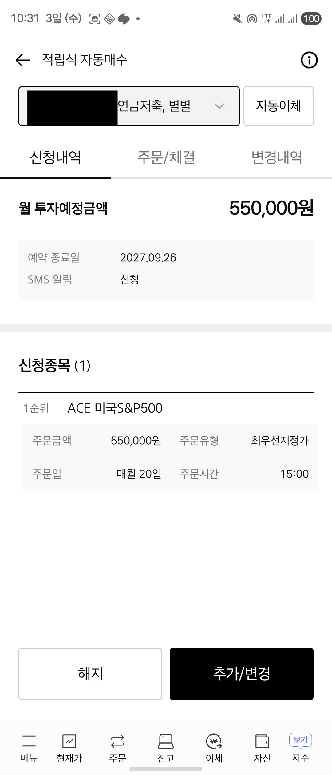 저처럼 자동매수로 꾸준히 적립해 두면 55세 이후 노후 자금 걱정을 크게 덜 수 있을 거라 확신합니다.