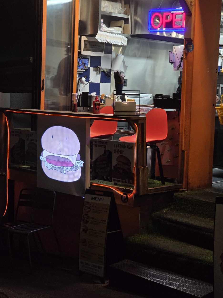 정말 미국 현지 느낌이 많이 나는 수제버거였어요! 장사의신에서 극찬받을 만한 이유를 알겠더라고요. 특히 패티의 육즙과 부드러움은 정말 다른 곳에서 맛보기 힘든 수준이었어요. 다만 웨이팅과 좁은 매장은 감안하고 가셔야 할 것 같아요. 포장해서 근처 공원에서 먹는 것도 나쁘지 않을 것 같더라고요!