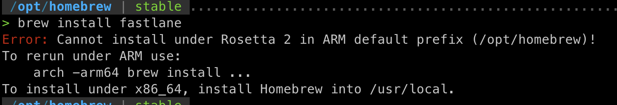 Error: Cannot install under Rosetta 2 in ARM default prefix (/opt/homebrew)!